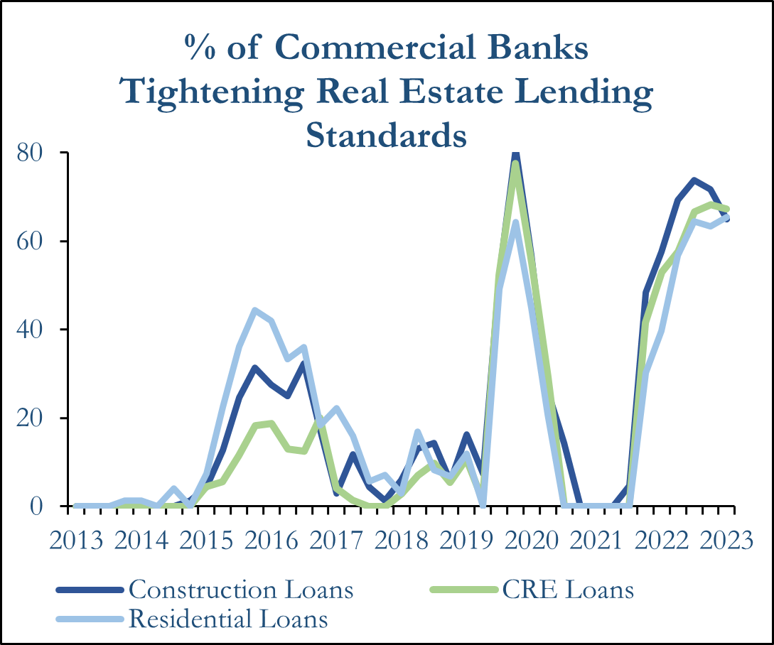 United States Commercial Banks have significantly tightened their lending standards for new commercial real estate loans. Source: MBA Senior Loan Officer Opinion Survey